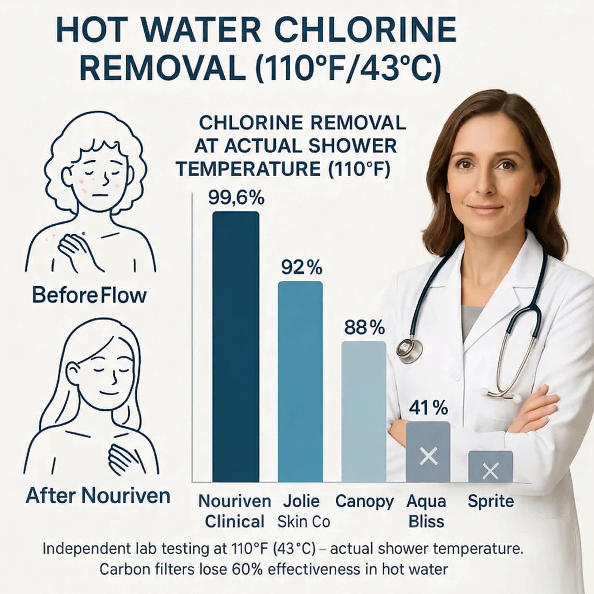 Key Finding: Only filters using calcium sulfite technology maintained effectiveness above 95% at hot temperatures. Carbon-based filters, regardless of "stage" claims, consistently dropped to 35-45% effectiveness, a finding manufacturers conveniently omit from their marketing.
